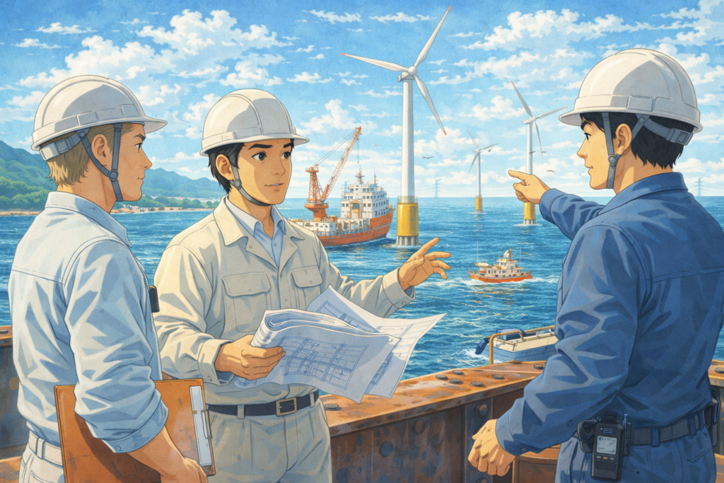 洋上風力案件への技術参画および製作管理に対応します。